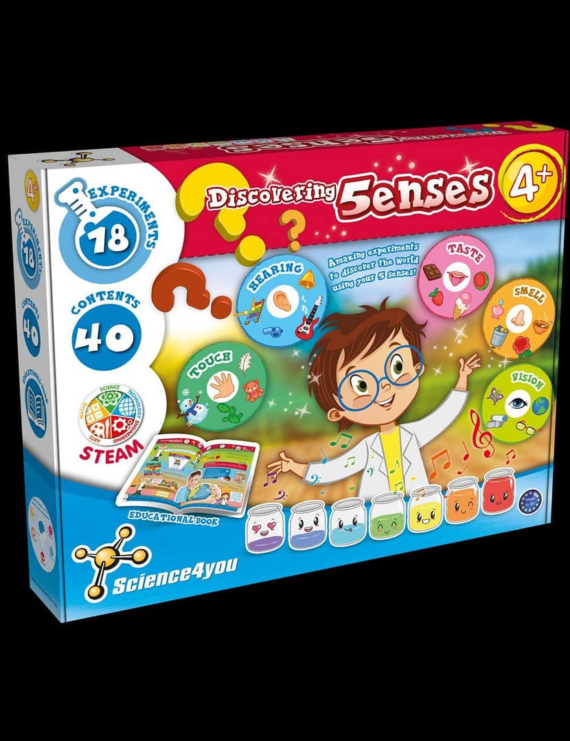 The hands-on science activity kit allows children to develop different cognitive skills through play. Scientific studies show that when we are having fun learning or making discoveries during an experiment, that positive experience helps stimulate the brain! Discover the world using your 5 senses with these amazing experiments!