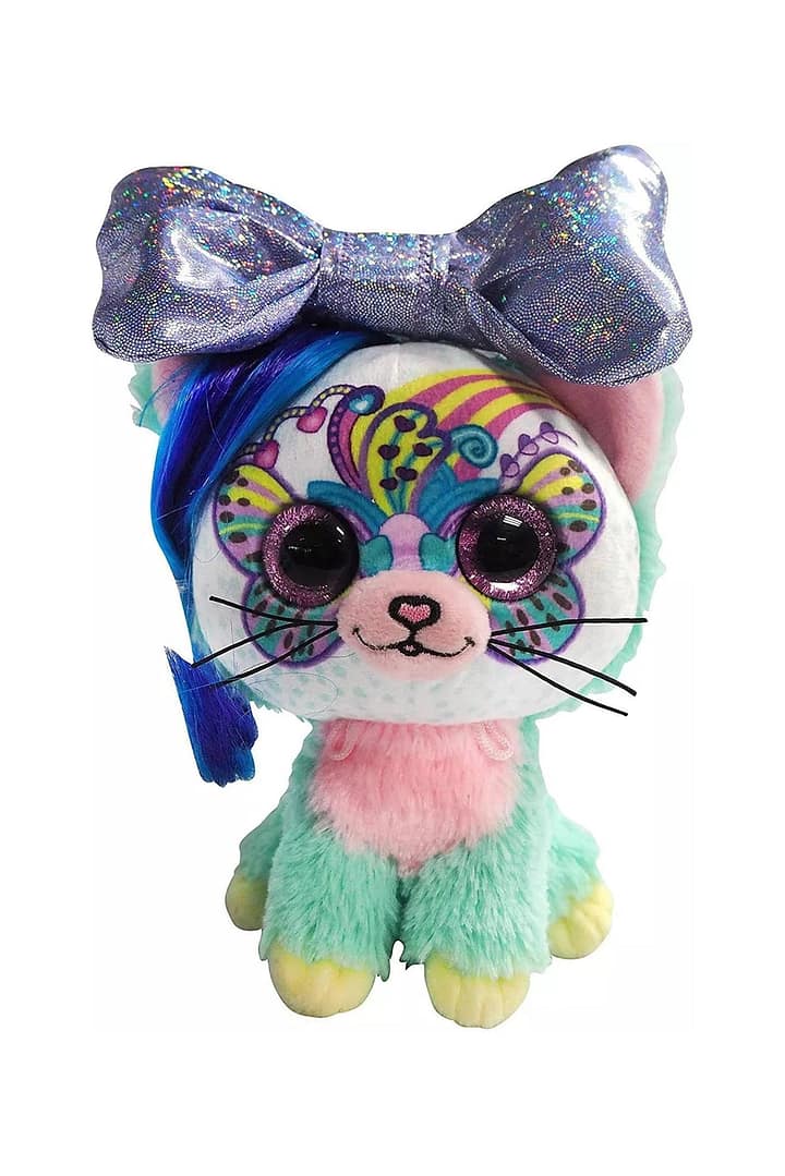 Little Bow Pets Large are best friend for your child that comes with amazing and adorable surprises! They are irresistible with they’re varied colorful patterns, glittery bows, and big round sparkling eyes. Discover little gifts hidden within the the bows, one on each side of the center knot. Open up the bow and discover fun toys and accessories for styling your pet’s hair. A feature often not found on many stuffed animals is they long locks of all of the Little Bow Pets. Each has a unique coloring and is soft and style-able. Brush, braid, or barrette to your heart’s content; or even have them match your hair style! Pick your favorite color and pattern for the pet of your dreams. They are massively collectible and all come with unique mystery toys to find in their bows. Trade bows with each pet or your friend’s pets, trade accessories or toys for maximum fun. Little Bows Pets with big surprises, find them all!