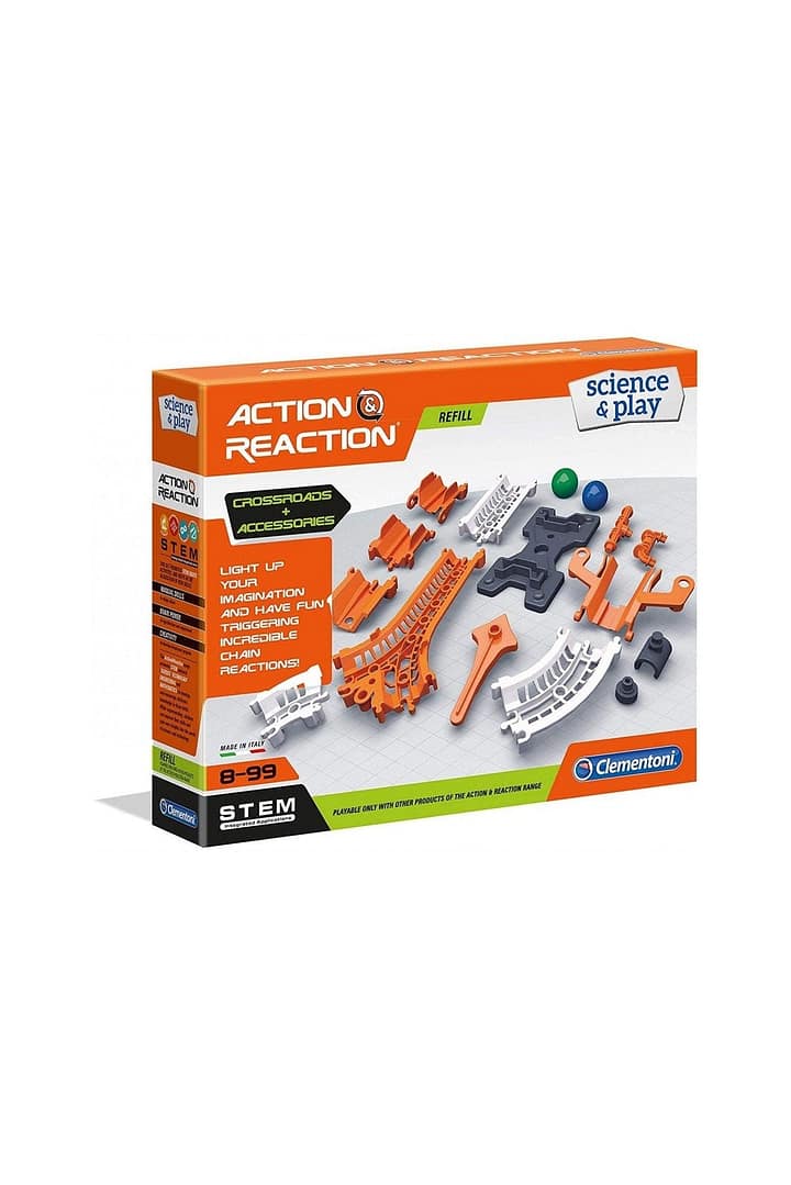 The Action Reaction range provides endless fun and stimulates creativity. It is a unique scientific kit to learn the physics principles, design tracks and experiment gravity, force and lever by using the several parts and accessories provided. The range includes products which allow the child to create amazing routes and which can be personalised also using objects available at home, perfect to maximise the playing activities and stimulates the imagination A fantastic kit compatible with the entire Action and Reaction range to create even more astonishing circuits and embark on breathtaking challenges With the fork you can split your tracks, change the direction of the balls and challenge the force of gravity Track, platforms, junctions, crossroads and balls are included. A perfect game to experiment with the basics of physics in an engaging and truly creative way The manual included guides the child step-by-step through endless fun An educational science kit suitable for children from six years old up to ninety-nine years old.