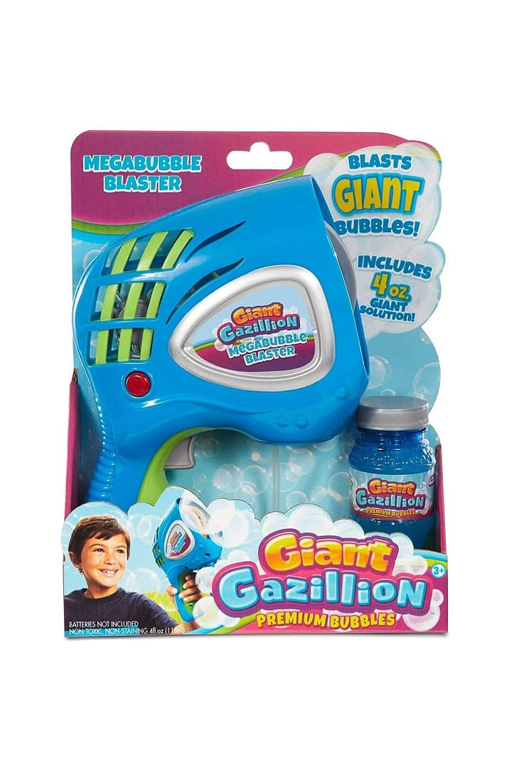 Create giant 6-Inches� bubbles at the push of a button with the all-new Gazillion giant mega bubble blaster. This Meg blaster and bubble solution produce bigger bubbles than ever before.