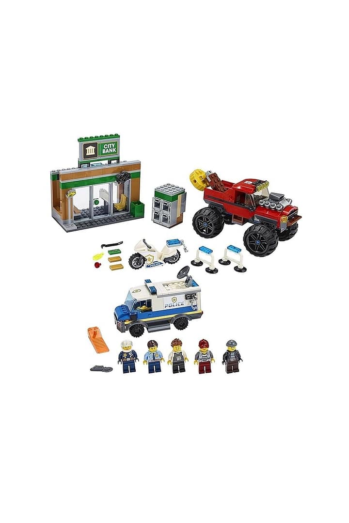 - Monster Truck & Bank Heist: Build a monster truck with a magnetic arm, a bank building with a detachable safe, and a police surveillance van.
