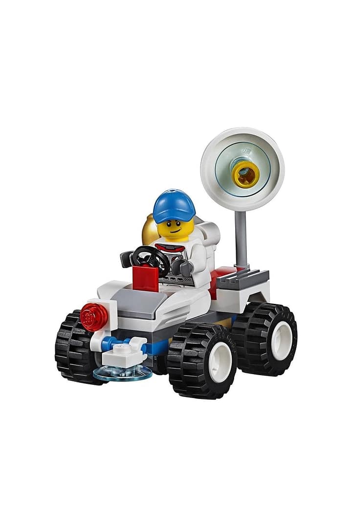 The Mars rover buggy comes equipped with an infrared camera and a surface scanner, perfect for discovering new Martian terrain. Accessory elements like a wrench, space helmet, peaked cap, and hard hat add to the realistic play experience. The computer station and other components enhance the adventure, making this set a fantastic addition to any LEGO City collection.