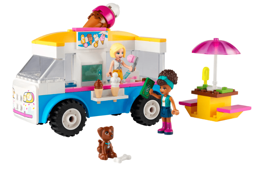 Sweet Role-Play Fun – Build an ice-cream truck and serve up fun with LEGO® Friends Andrea, Roxy, and a dog figure
