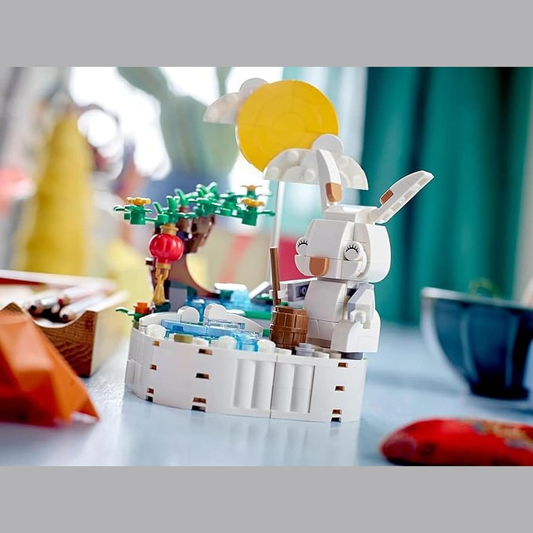 This model is not only a fun building project but also a captivating display piece. Standing over 5.5 inches (14 cm) high, with a length and depth of 5 inches (13 cm) each, the LEGO® Jade Rabbit set makes a striking centerpiece for celebrations or a thoughtful gift for anyone who enjoys festive-themed builds.