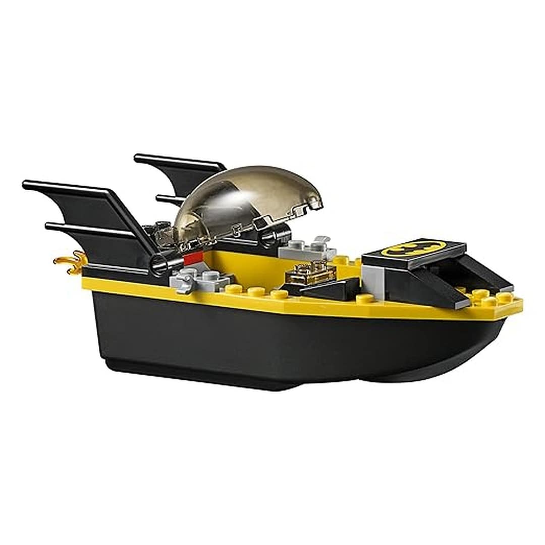 - Batboat: Includes an opening minifigure cockpit, bat-disc shooter, and measures over 1” (5cm) high, 5” (15cm) long, and 1” (5cm) wide.