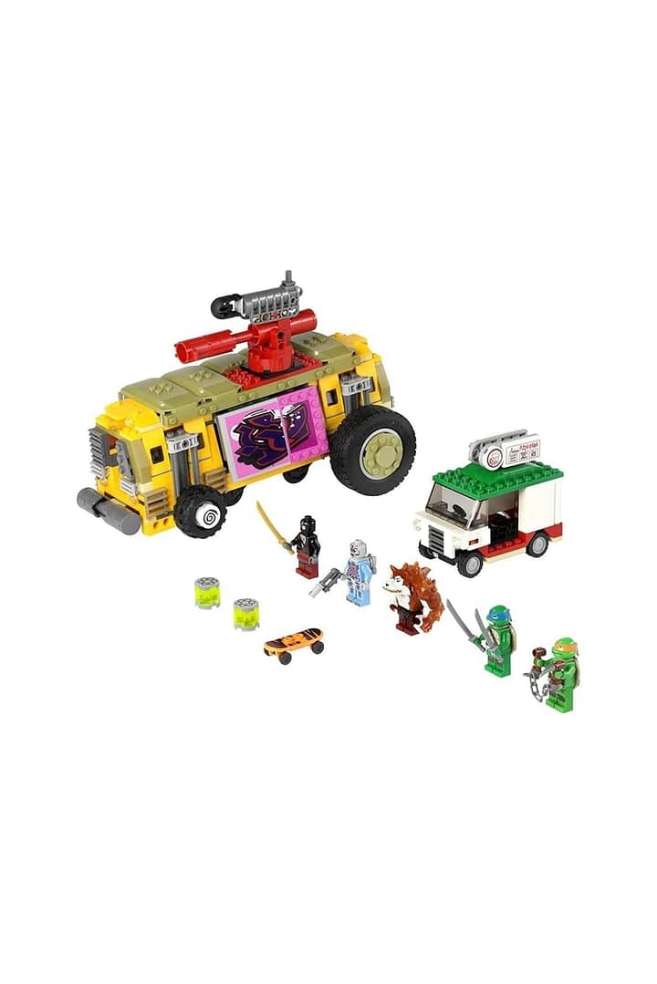 - Includes Dogpound’s pizza van and oze drums, plus 6 accessories: a LEGO Technic shooting cannon, 2 swords, nunchucks, a gold sword, and a laser gun.