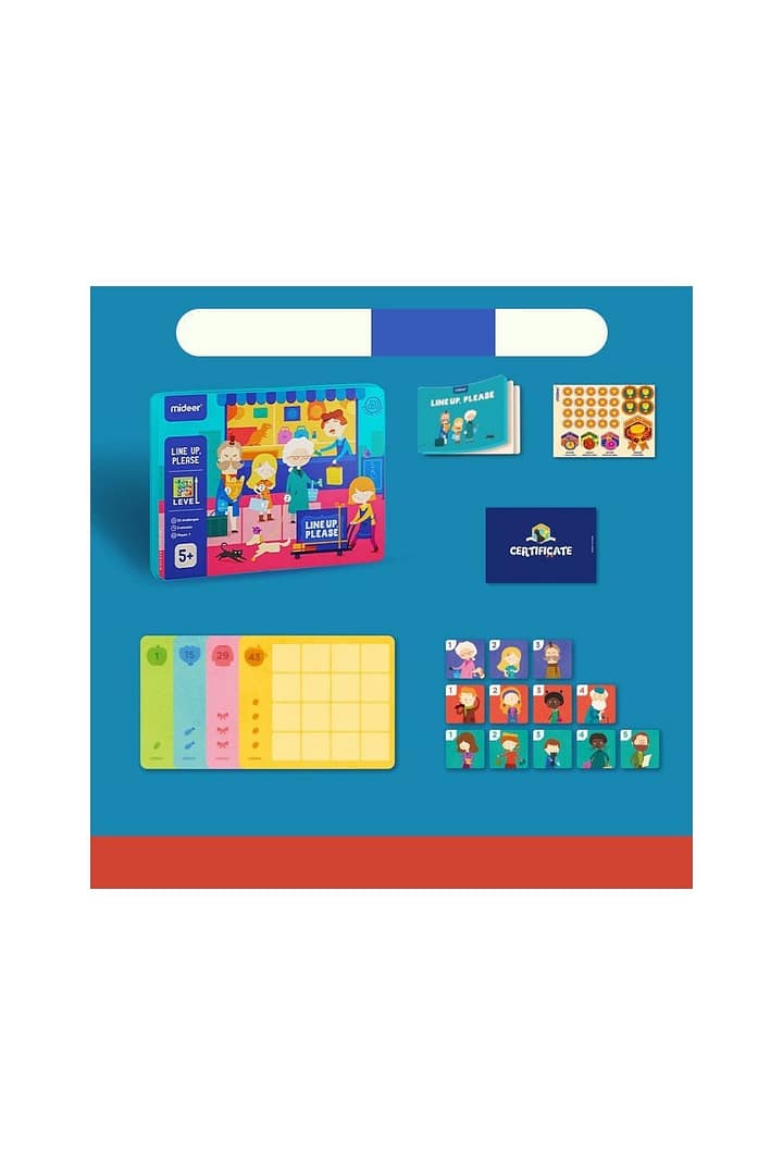 This logic board game, for ages 5 and up, includes 52 Line Up cards and 12 Character tokens. It features a life-based scene that reproduces how people line up for shopping, which teaches kids how to wait in line in an orderly fashion as well as simple number sequences Line Up cards are divided into four difficulty levels, From easy to difficult kids have fun completing each challenge, which also helps promote their logical thinking skills.