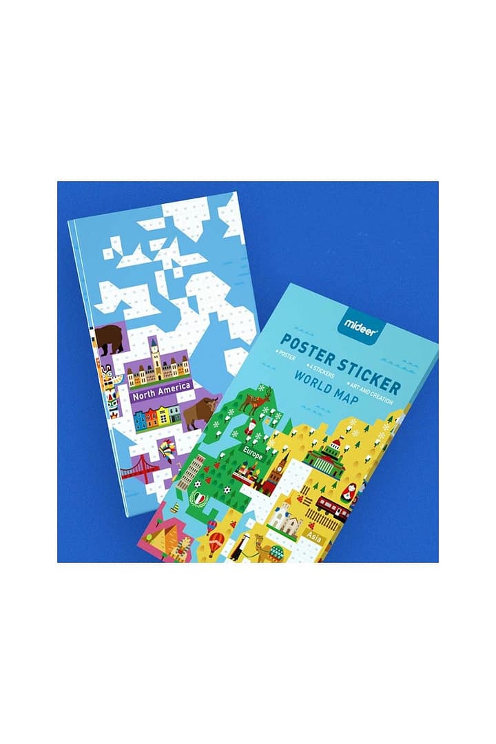 Mideer Poster Stickers – World Map is a must-have for 3-5 year old children to have fun sticking and removing these stickers. Each blank box on the map is marked with a number, developing children’s ability to locate a target and hands-on ability. Through play, they will learn about the great world and broaden their horizon. It contains 46 elements to teach kids about colors and develop their concentration.