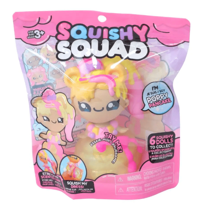 Squishy Squad are cute, squishable buddies which love to be hugged, squashed and stretched. Each doll has two squishy sensations; SQUEEZE their colourful dresses to watch the glitter flow, and STRETCH their soft hair. There are six pretty dolls to collect – Cupcake Chloe, Daisy Donut, Millie Macaron, Kiki Scoops, Kitty Cakepop, Poppy Pancake. Which will you choose?